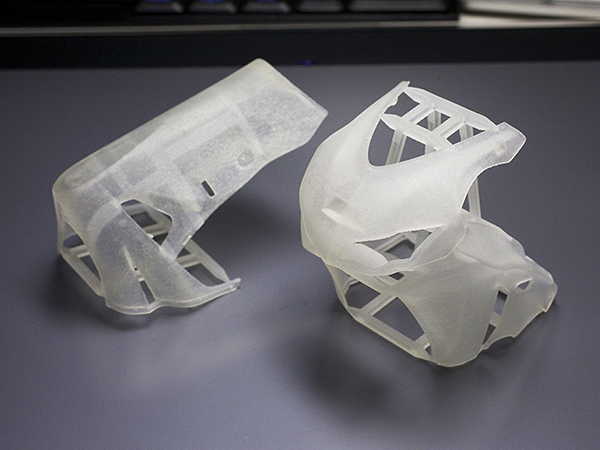 ![]() うわっ!気がついたら最下位になってた。 メインのカウルです。 カウルはいろいろ迷ってまして、レジンのCNC加工でも作ってるのですが、どうしてもアッパーカウルだけで4パーツ構成になってしまいます。 ワンピースにできればそれにこしたことはないので、ダメもとでShapeWaysに出してみました。 厚みが基本0.8mmですので最悪グニャグニャにあがってくるかも…と心配していましたが、結果 は良好! むしろこれくらいのほうが得意と言わんばかりにバッチリあがってきました。 |