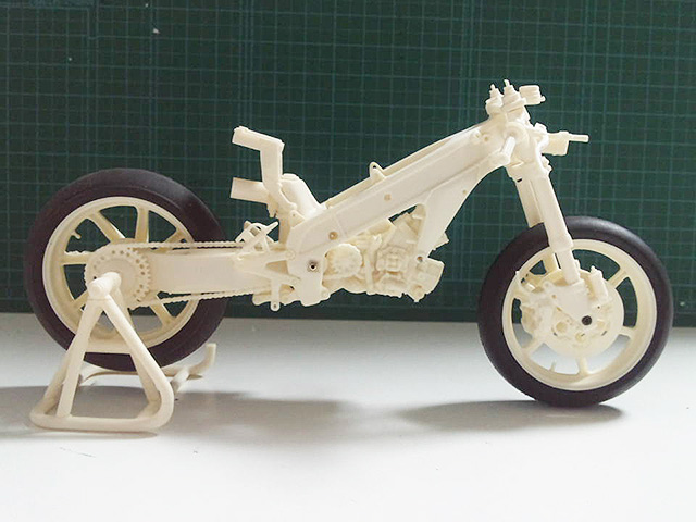 ![]() 修正が必要そうな箇所は、スイングアームのタレ角不足=リアの車高が低いのかな?カウルステーがカウルの重さで変形している=強度不足?Fフォークのアウターチューブとハンドルがグニャグニャしていてシャキッとしていない=お湯につけて修正する・・・。サイレンサーがシャキッとしていない=作り直そうかな?その他 ちょこちょこ修正が必要そうですが、ガレージキットとしては作りやすくてとてもいいキットだと思います。プロポーションがカッコいい〜 作っていてニヤニヤしてしまいそうです(笑) |