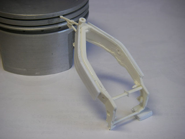 ![]() まずは、基本となるフレームから。 キット部品の外側にプラ板を貼り、内側を削って幅広フレームに改造します。 |