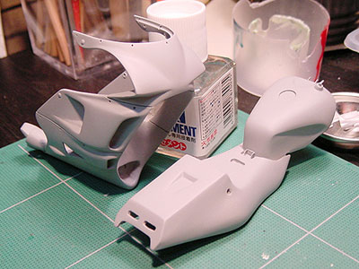 どを整える。カウル接合部の分割線は新たに掘り直した。