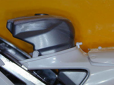 ノーマルのタンク形状ですが、キャップ部分が出っ張りすぎでとてもかっこわるいで す。実車はこんなに出っ張ってはいません。 | |