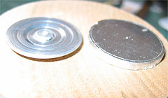 次にブレーキのディスク板を制作します。 これも5/mmのアルミ板から削りだしです。 |